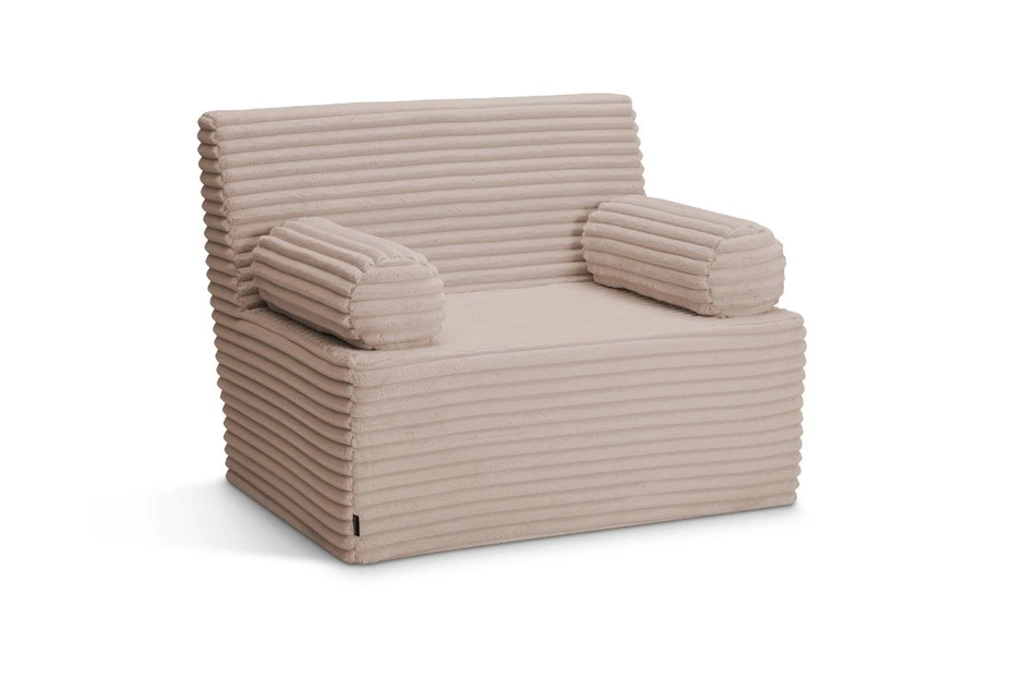 Sofa Flexio wyróżnia się wyjątkową mobilnością – nie wymaga oparcia o ścianę, co daje swobodę w aranżacji przestrzeni. Z kilku pojedynczych modułów można łatwo stworzyć wygodny narożnik, dopasowując układ mebla do własnych potrzeb.