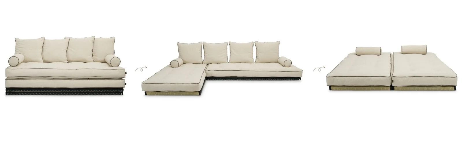Sofa Tatami Medium Latex Kedro to minimalistyczny i wielofunkcyjny mebel. Po rozłożeniu pełni funkcję łóżka, natomiast po odpowiednim zestawieniu mat tatami tworzy niski narożnik, idealny do wypoczynku w ciągu dnia.